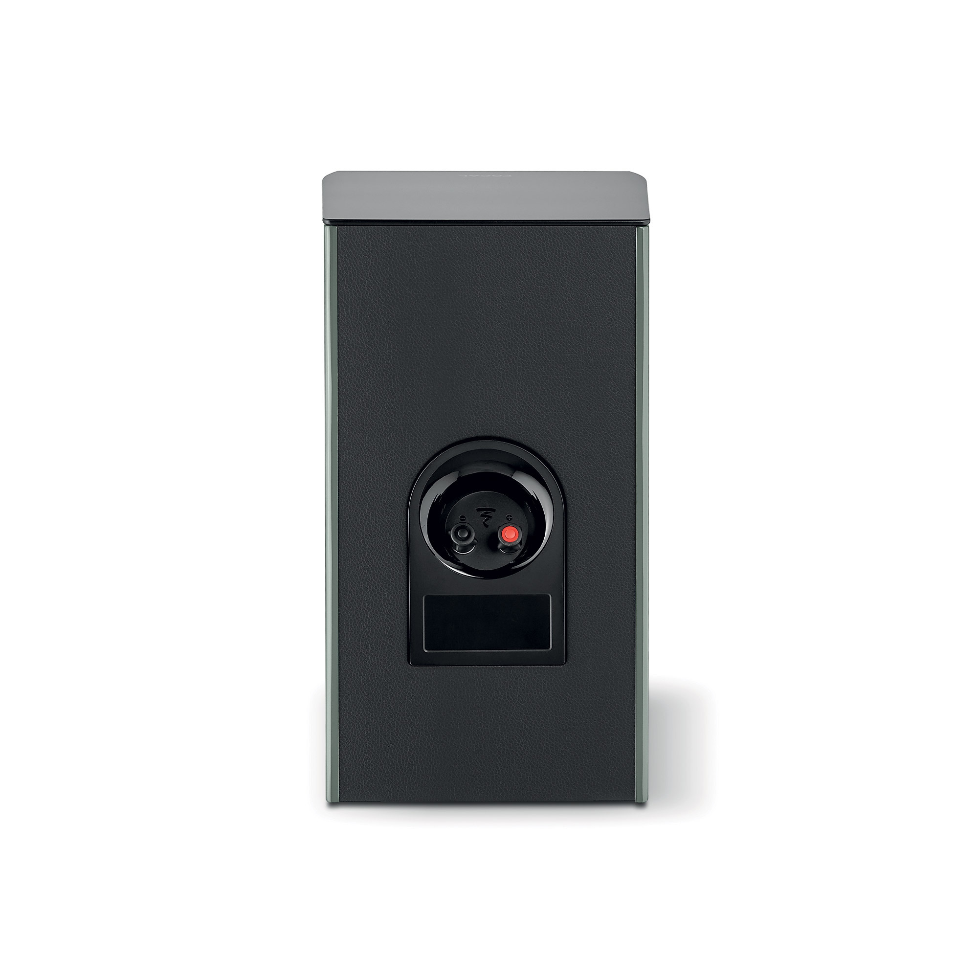 El altavoz puede colocarse directamente donde se desee o sobre un soporte específico (opcional). Sus elegantes acabados (Black High, Prime Walnut y Moss Green High Gloss) se combinan con un panel frontal con efecto de cuero para lograr una firma estética refinada.