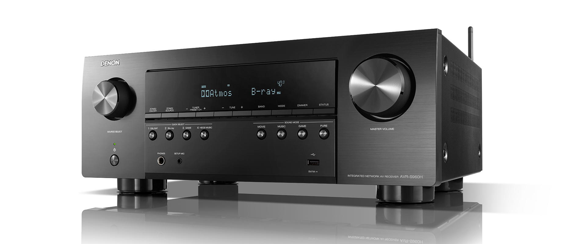 El puerto USB del panel frontal permite reproducir cómodamente audio en formato MP3 y de alta resolución (archivos WAV, FLAC, ALAC y DSD de 2,8/5,6 MHz). La tecnología HEOS integrada permite transmitir música de forma inalámbrica desde servicios de música populares como Spotify, Amazon Music HD, TIDAL y muchos más a través de Bluetooth, Apple AirPlay 2 y Wi-Fi. El nuevo AVR-S960H de Denon también funciona con, el Asistente Siri de Apple para un control de voz de lo más sencillo.